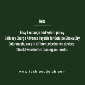 বিঃদ্রঃ- ছবি এবং বর্ণনার সাথে পণ্যের মিল থাকা সত্যেও আপনি পণ্য গ্রহন করতে না চাইলে কুরিয়ার চার্জ 140 টাকা কুরিয়ার ডেলিভারি ম্যানকে প্রদান করে পণ্য সাথে সাথে রিটার্ন করবেন। পরে কোন কমপ্লেইন/রিটার্ন গ্রহণযোগ্য নয়!